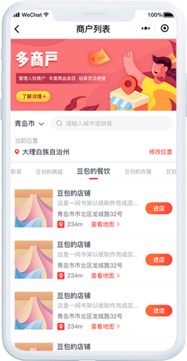 主商城统一管理,支持子商户独立创建并运营
