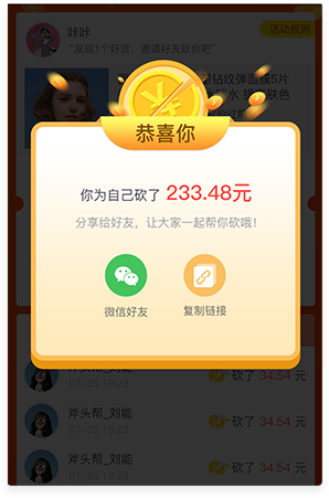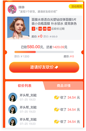 用户通过分享砍掉价格,裂变传播快速推广,